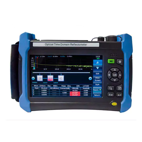 - Fitur: OTDR, peta acara, OPM, ol, VFL (mikroskop opsional)