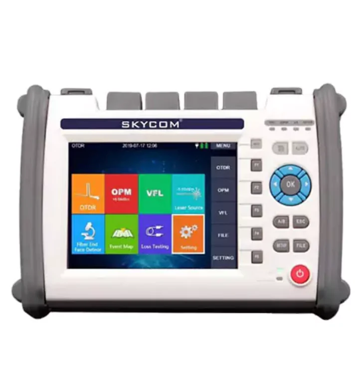 Skycom T750 series tester is a comprehensive optical fiber measuring instrument developed by Shanghai Dwei Communication Technology Co., ltd. to solve the measurement of various parameters of optical fiber. It mainly USES OTDR function and has other common measuring functions. Really reflected: ONE MACHINE, TESTING ALL!